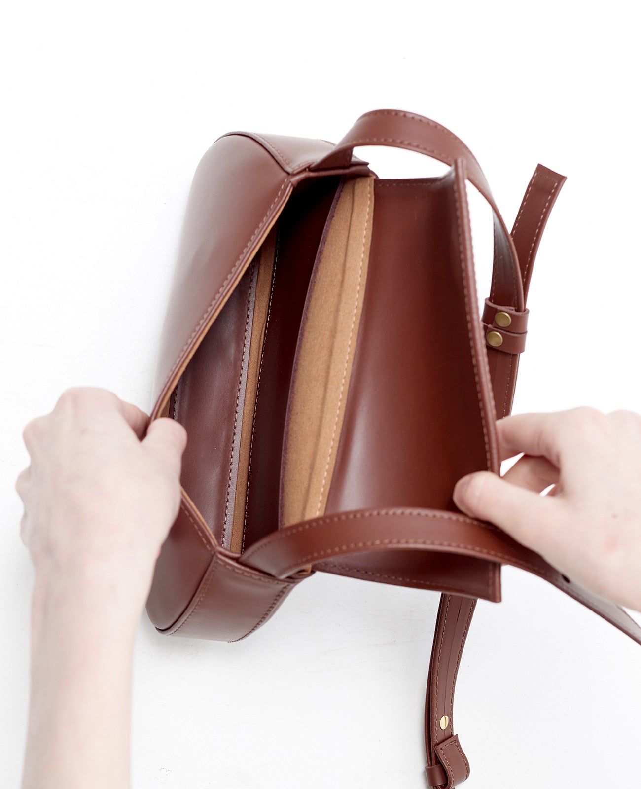 Avoid storing genuine leather bags in closed plastic bags. This promotes oxidation processes and gradually changes the color of the leather. Do not store the leather product in direct sunlight, as this may cause discoloration or fading.