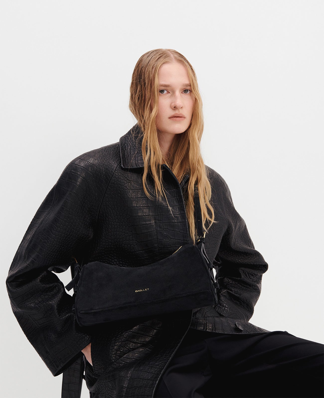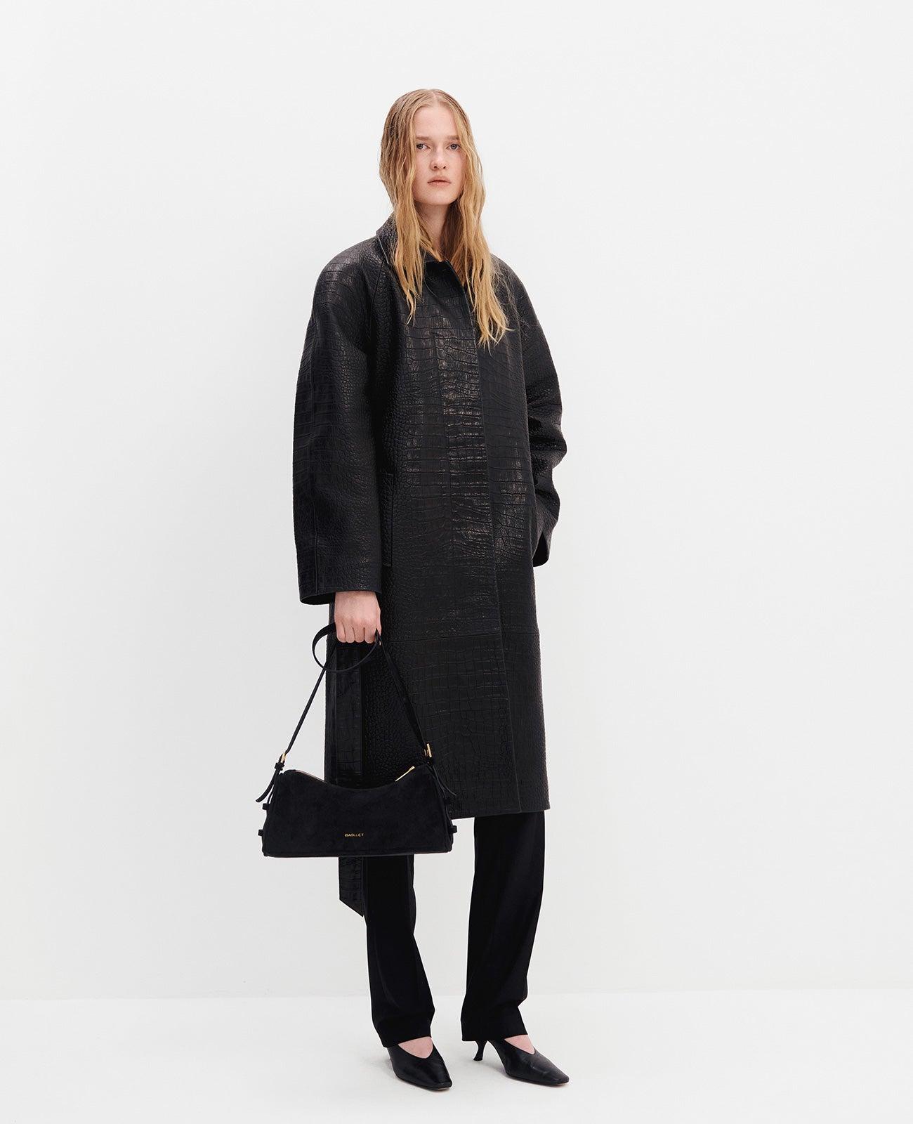 An elongated trapeze shape gives a fresh take on the classic baguette. Made from premium Italian leather with a subtle sheen and finished with gold hardware, this piece combines elegance with function. Despite its compact appearance, the spacious interior is a masterclass in ergonomic design.