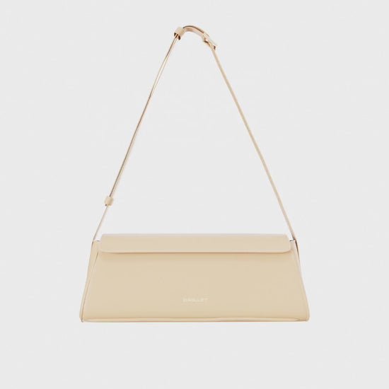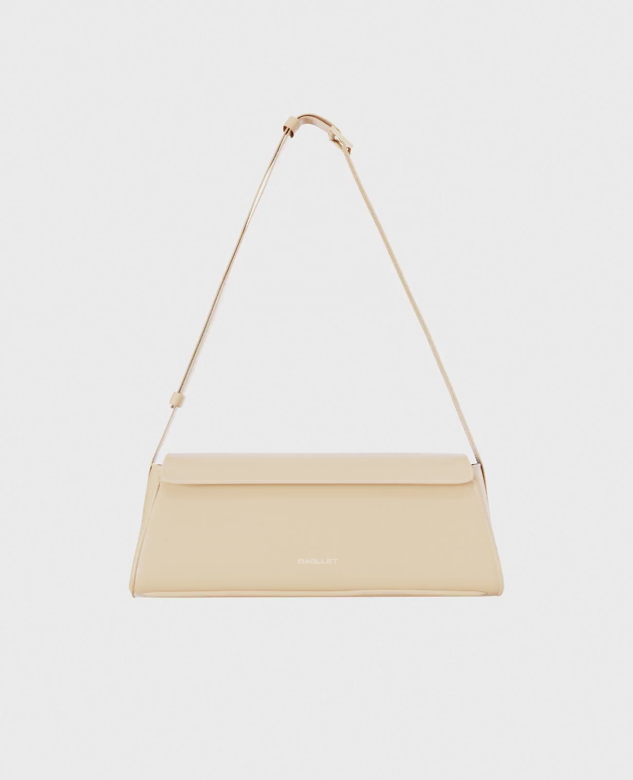 BG211 — another interpretation of BAGLLET’s baguette bag, a variation on how to play with trapezoidal silhouettes and elongated proportions. The bag has rounded flowing corners, delicate soft leather, and sharp edges that bring structure and a refined look. A wide adjustable strap 60–110 cm adds versatility to styling. We chose a compact yet classic size — 33 х 12 х 10 cm (narrowing to 5 cm), with an inner pocket 8 х 20 cm for essentials, and four colorways: black, brown, beige, and burgundy.